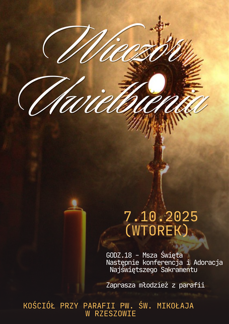 Rozpoczniemy krótkim słowem wprowadzającym, a potem przejdziemy do adoracji Najświętszego Sakramentu. Całość poprowadzi młodzież z naszej parafii.